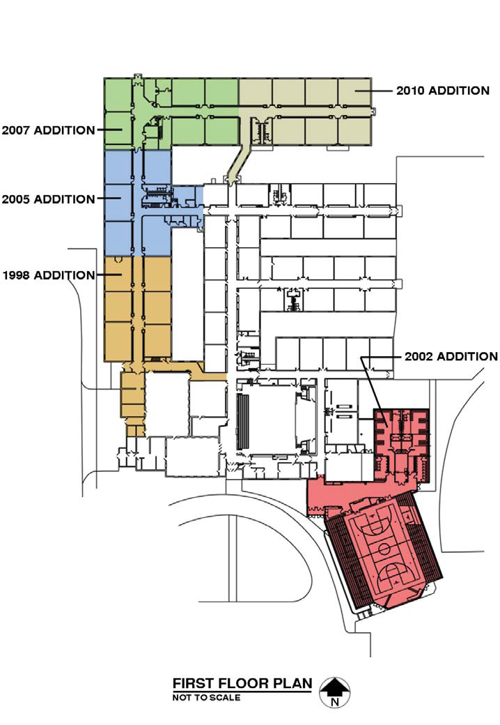 Phase One (1998): Six classrooms, mechanical room, and re-roofing the existing building.